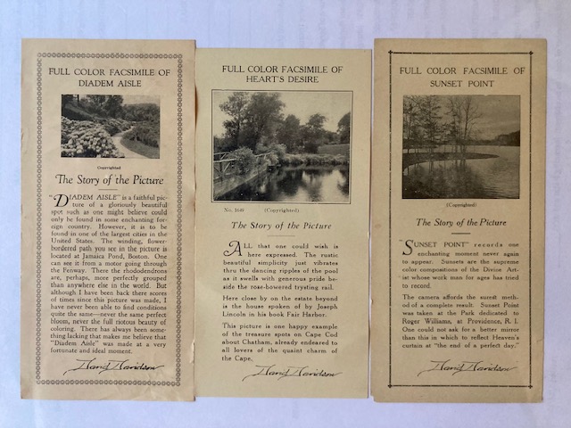 Davidson Facsimile Prints, that we had talked about in Part 1, were most likely the first alternative pictures he sold to compensate for times of declining sales. Wallace Nutting too made the same adjustments, selling his Processed Prints. These were also of some of his more popular hand-colored photos. But you have to realize, Davidsons’ business was very small in comparison to Nuttings. Davidsons payroll probably never topped 15 people. Nutting employed 220. So what has always been the case for someone running a small business? You survive by having “many irons in the fire”.