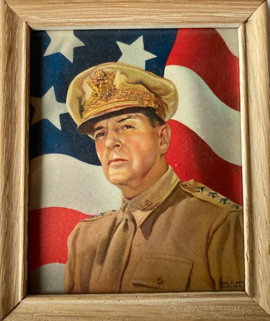 Davidson Studios began selling a series of patriotic colored prints. George Washington, General Douglas MacArthur, and WWII patriotic scenes were some of the many.