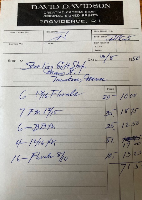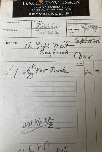 By 1950 hand colored photography sales that had begun to slow as early as the 30’s now slowed to a trickle. Years of Davidson compensating and always adding another iron to the fire to keep up with declining sales, were coming to an end.