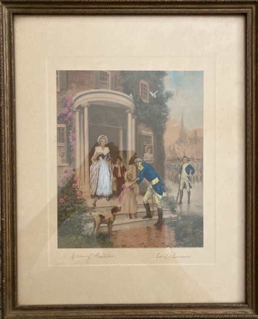 Added to Davidson’s repertoire of alternative pictures 1930’s – 1940’s, were pictures referred to as Colonial Prints. I can remember when one or two of these would show up at the auctions. I looked at them as being on the “rare” side and they didn’t go for much, so I was buying them. Not sure where the name Colonial Prints came from. I don’t think it came from Davidson because they are not prints. They are hand colored photos. And, they are not all colonial style. I think it might have just been a name put to these different pictures, not knowing what else to call them.