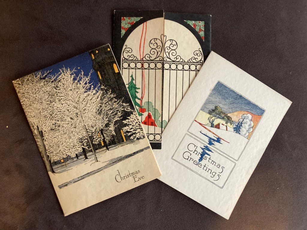 Here I’ve put together what I’ve found in going through my greeting card collection…